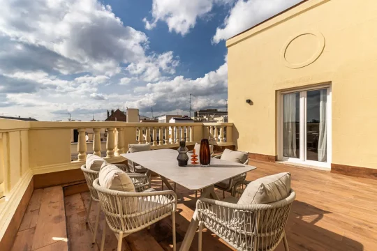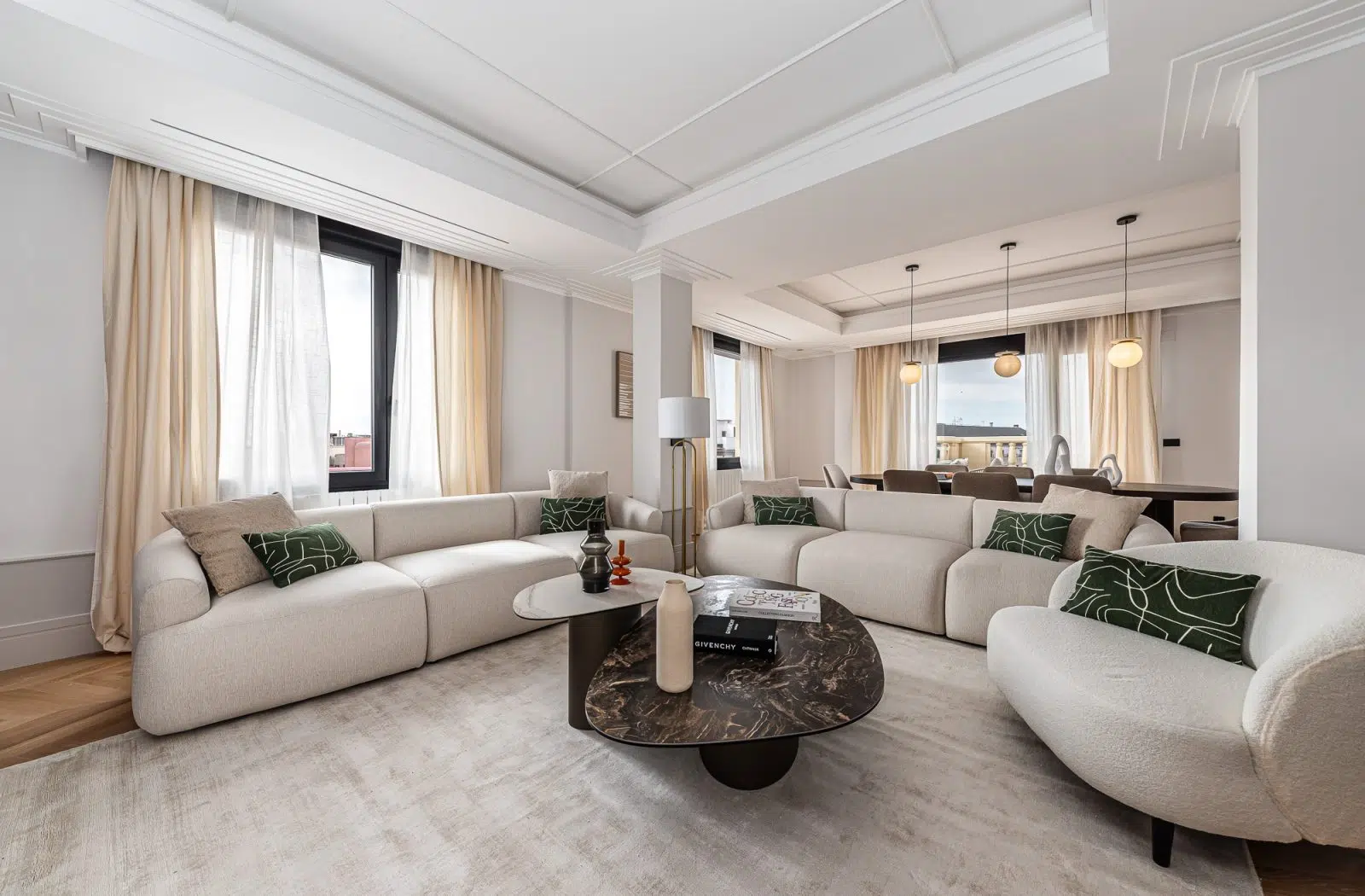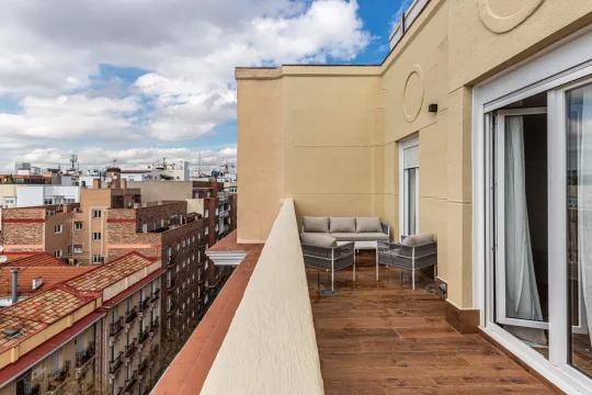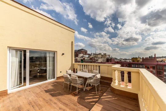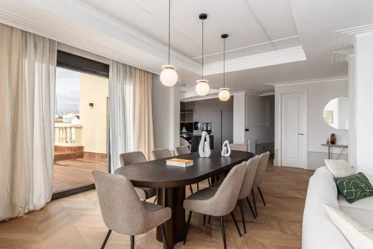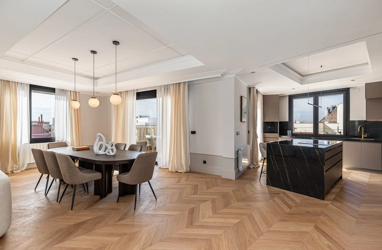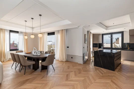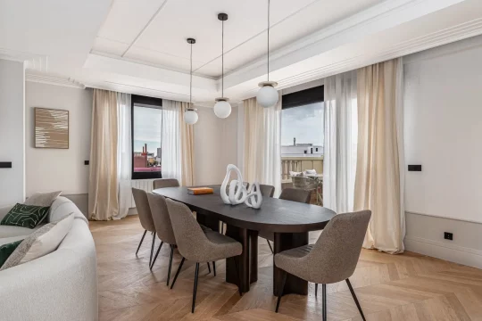 Ático exclusivo totalmente reformado de 319 m² en la calle General Pardiñas, en el barrio de Salamanca, Madrid. Ubicado en la 7ª planta de un edificio clásico con ascensor y portero físico, destaca por sus dos terrazas privadas de 25 m², orientación sur y oeste, ideales para disfrutar del sol y las vistas.