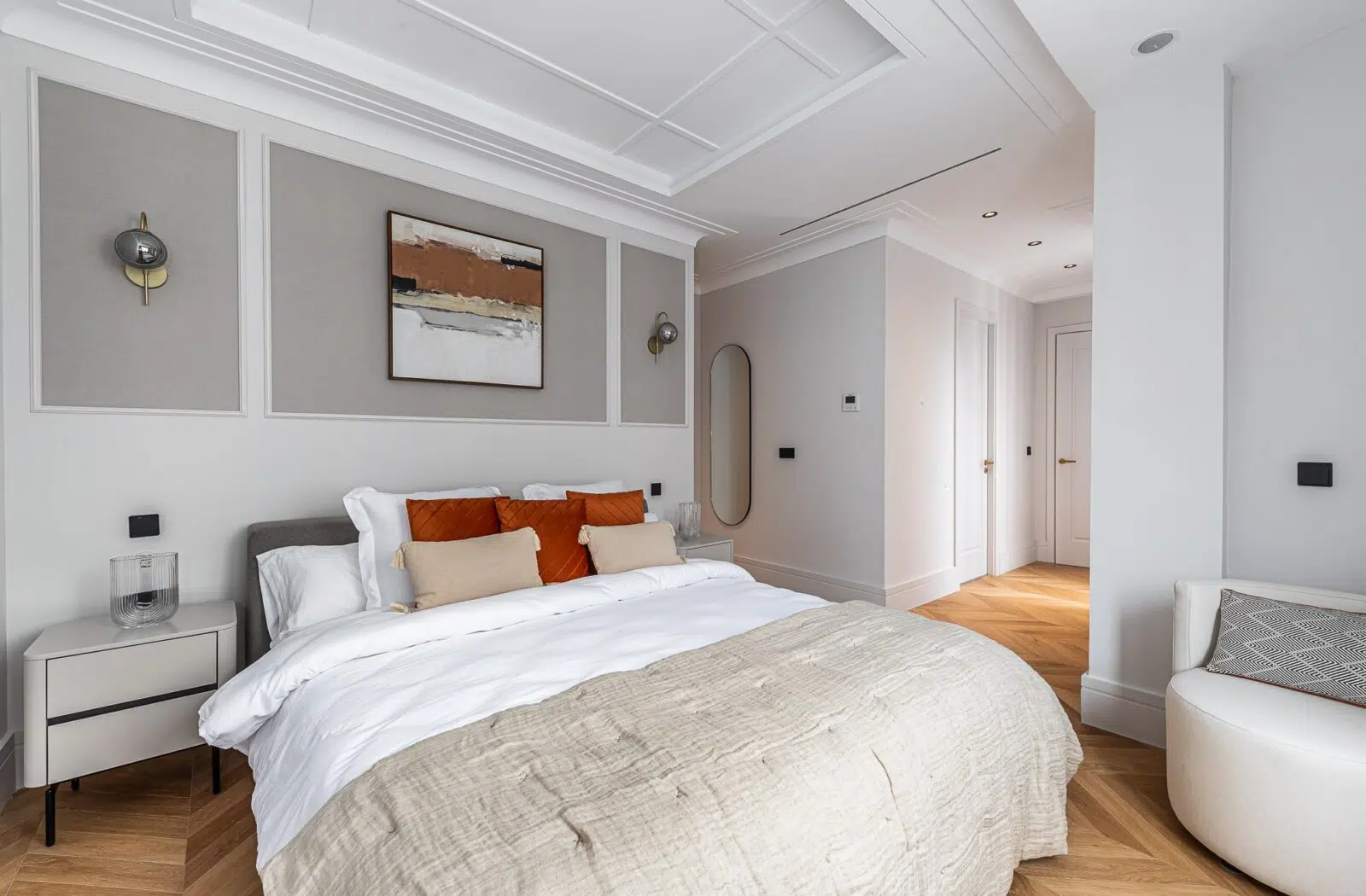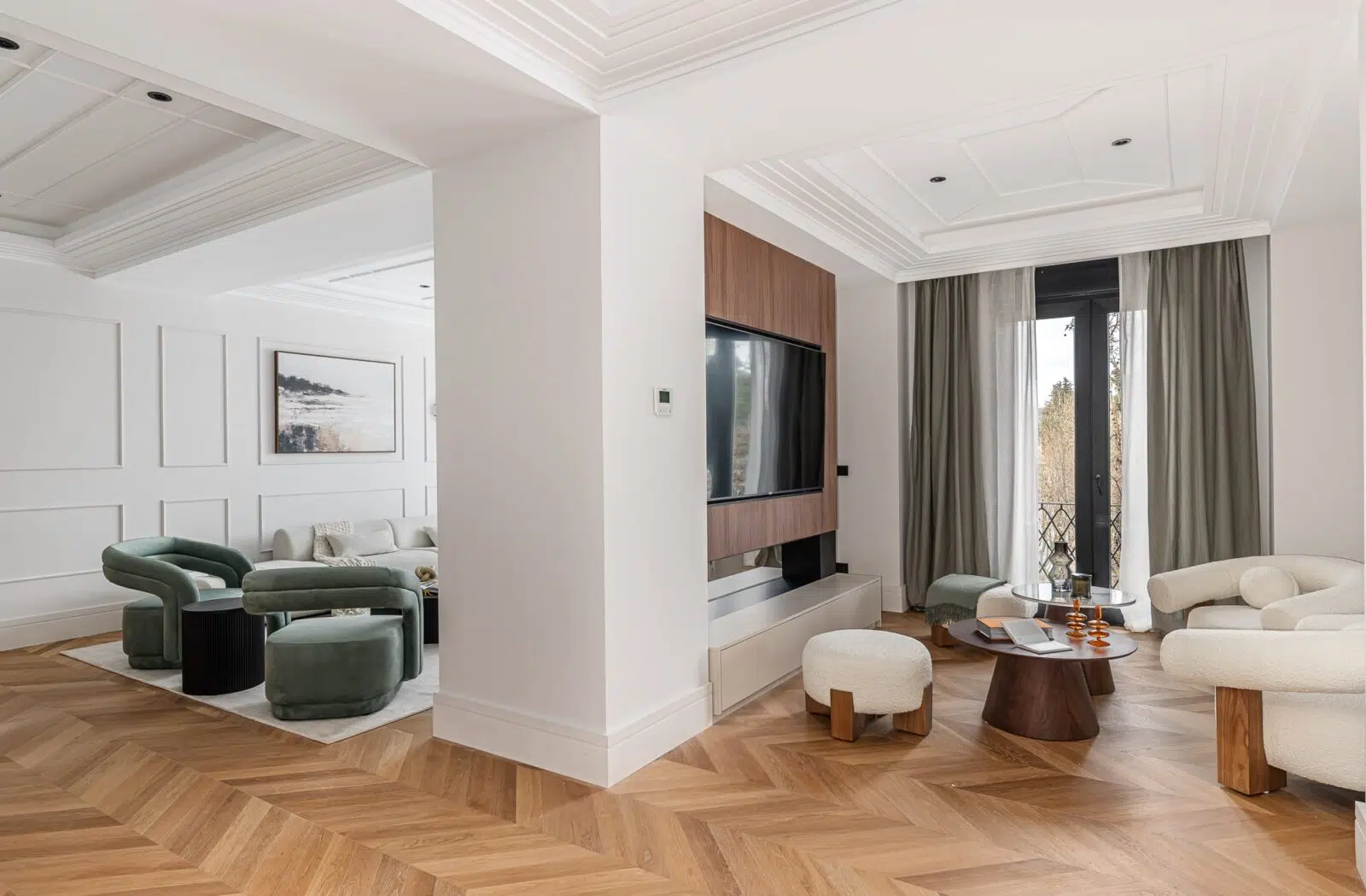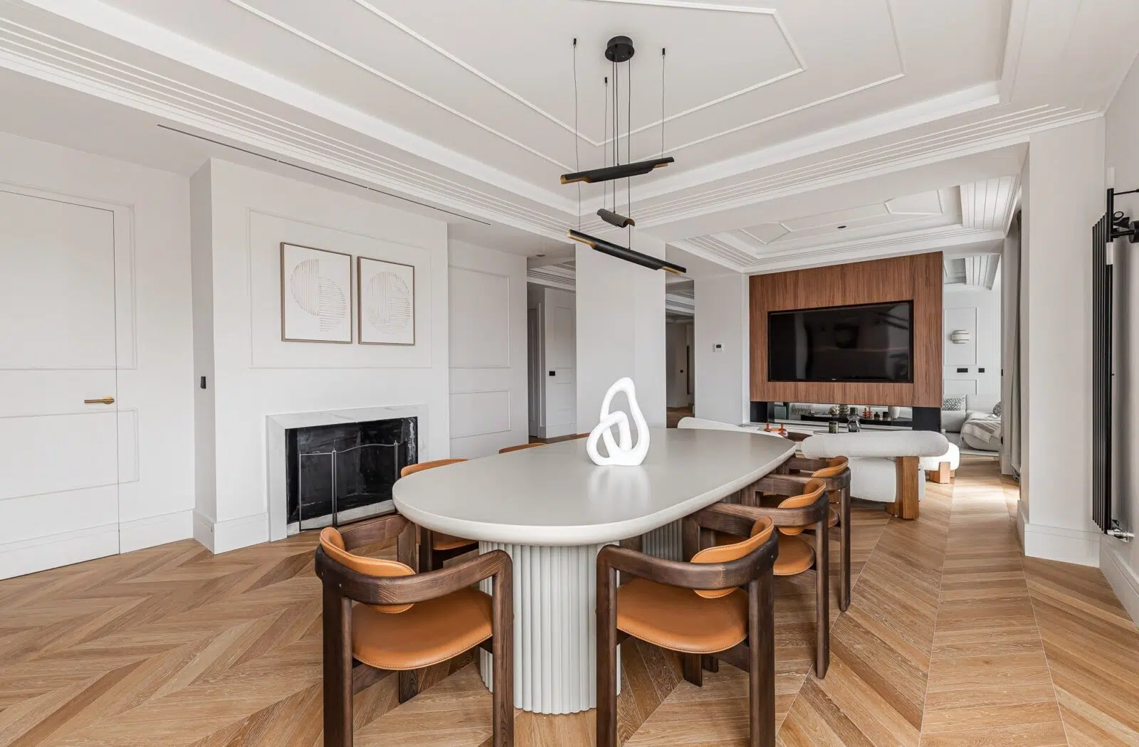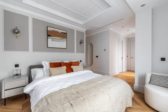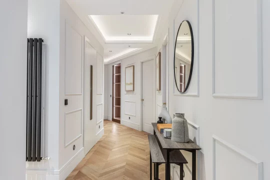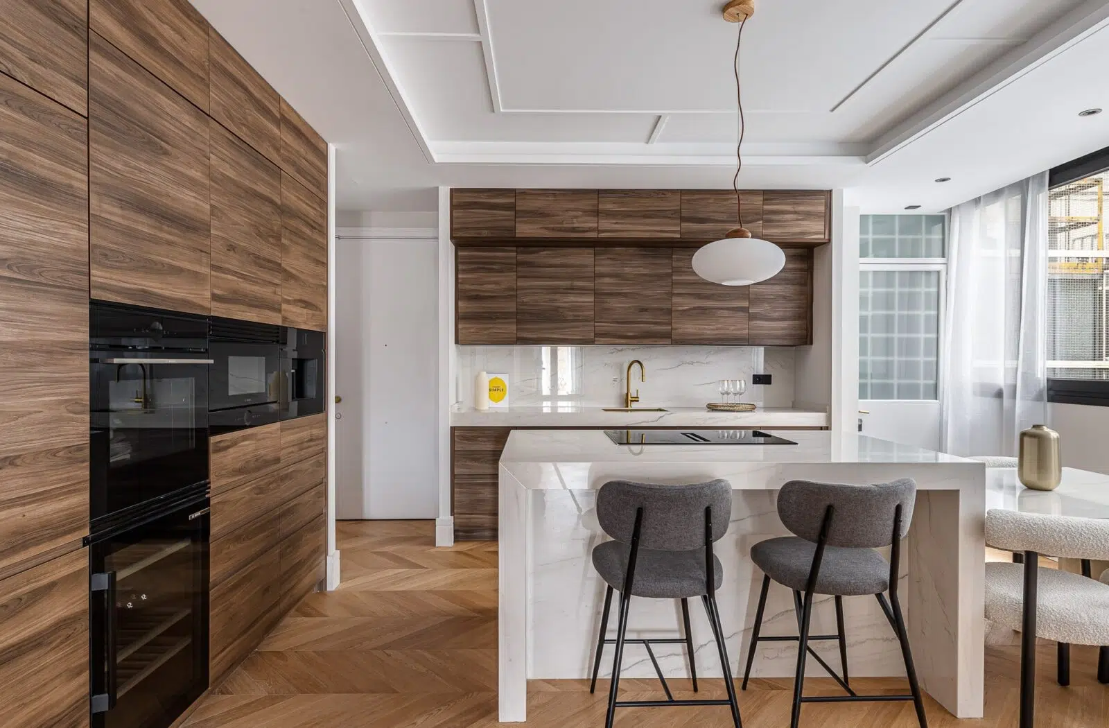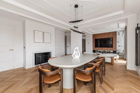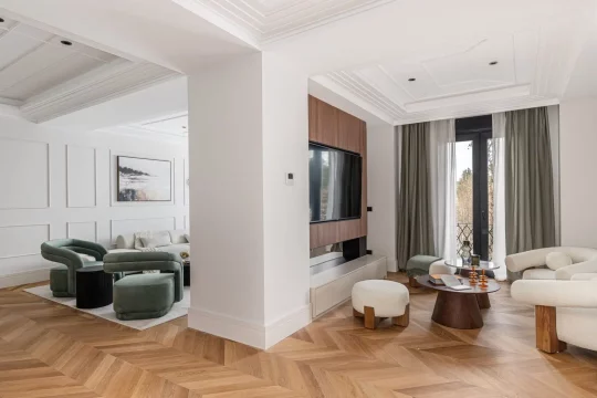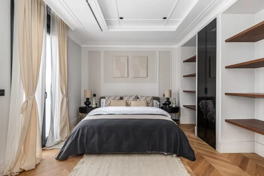 Ubicada en la 5ª planta de un edificio clásico con ascensor y portero físico, combina elegancia y tecnología domótica avanzada.