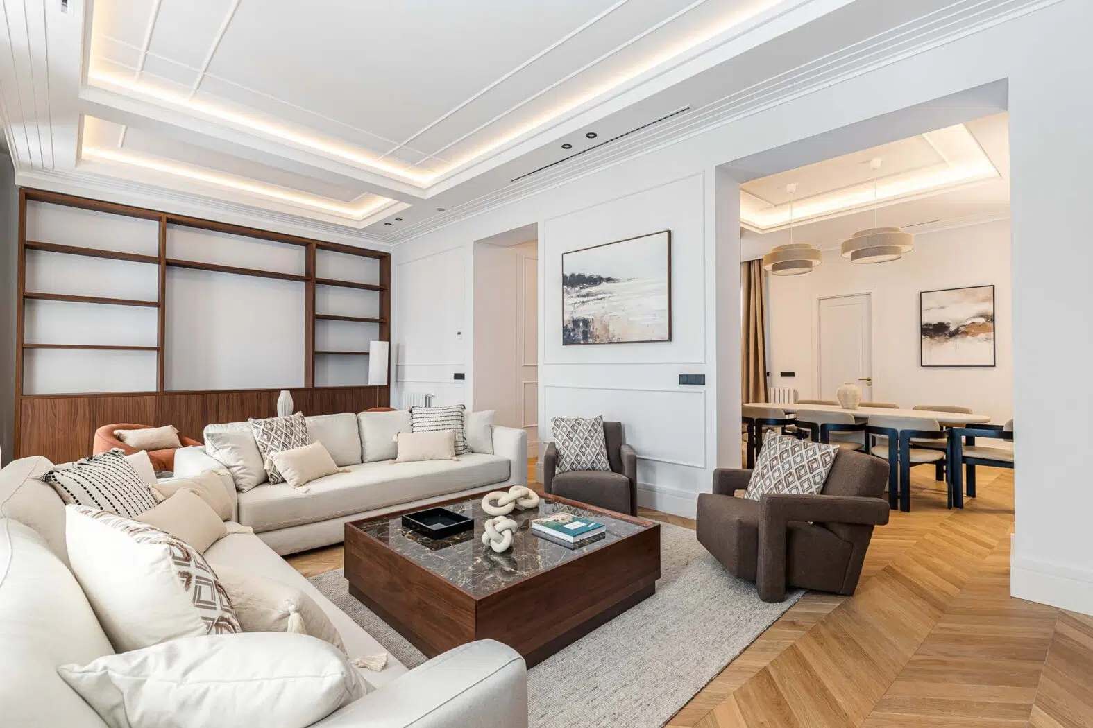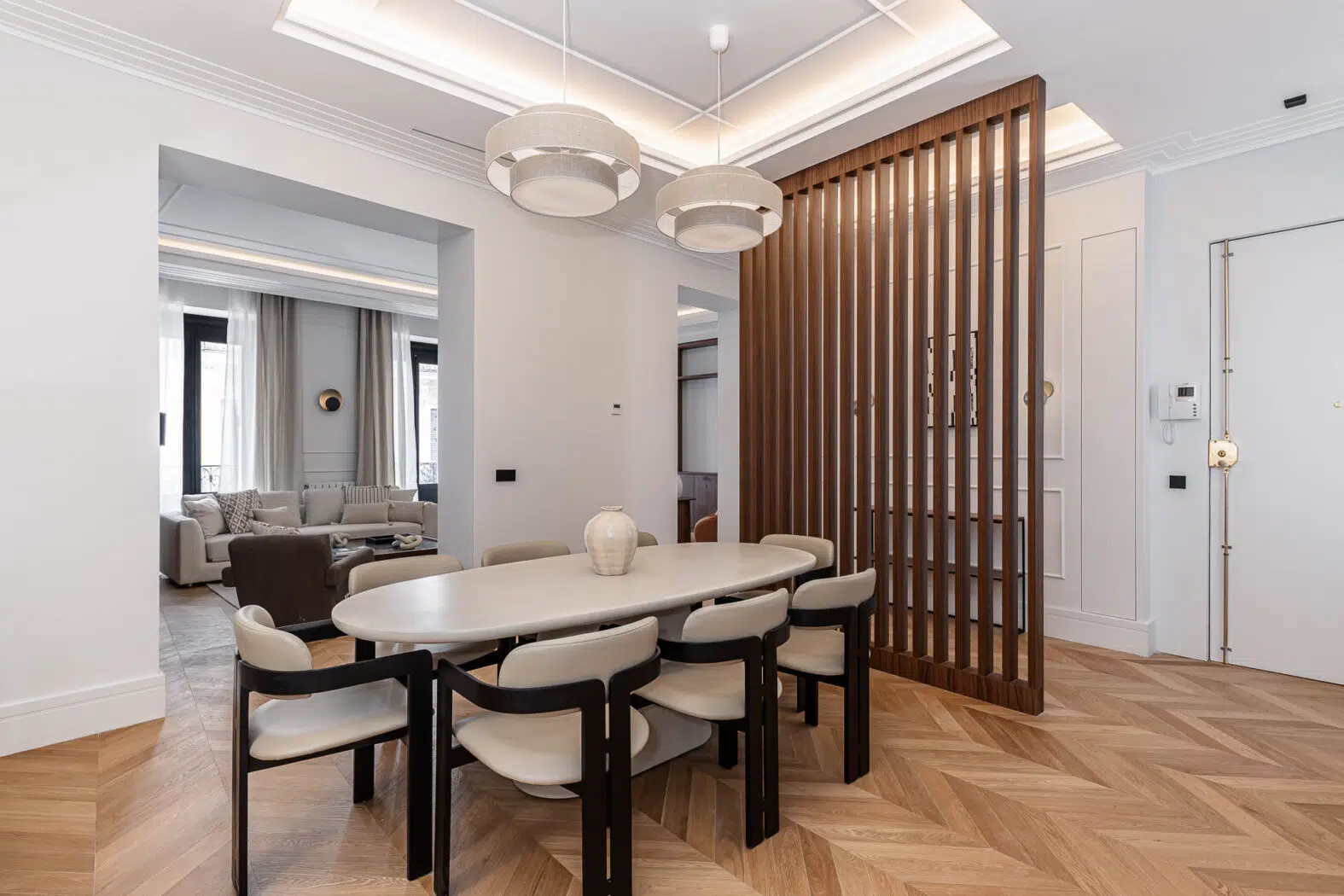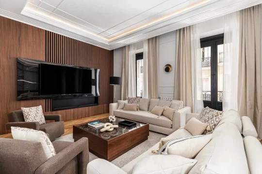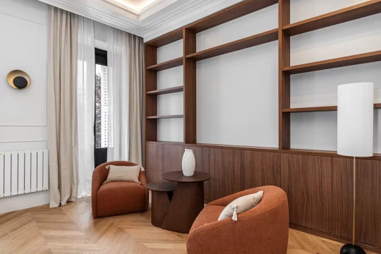 Vivienda totalmente reforma de aproximadamente 265 m², ubicada en la primera planta de un edificio clásico en el barrio de Recoletos, distrito Salamanca, Madrid.